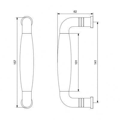 Haal de jaren ´30 in huis met deze stijlvolle deurgreep in wit. Combineer een historisch model met heerlijk gebruiksgemak! De Ika deurgreep heeft het tonmodel dat zo typerend is voor de jaren ´30 stijl van de vorige eeuw. Ika heeft gebogen hoeken en een afmeting van 157x62 mm. De hart-op-hart maat is 141 mm.