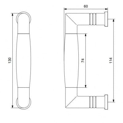 Deurgreep van RVS voorzien van een sterke poedercoating. Verkrijgbaar in verschillende afmetingen en u heeft keuze uit een zwart gecoate handgreep of een eiken whitewash handgreep. Zie tabel in afbeelding 2 voor materiaal handgrepen en bijbehorende maten. Het materiaal van de handgreep op de afbeelding is zwart gecoat.
