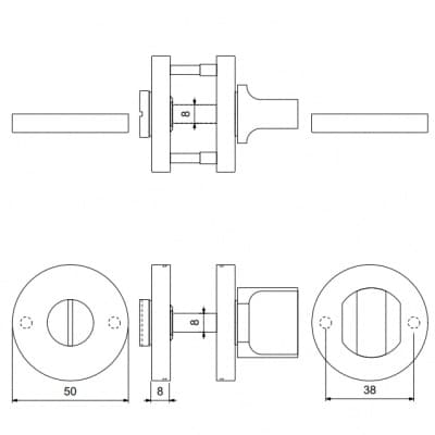 Privacy en stijl gaan perfect samen met dit kwalitatieve toiletgarnituur in wit met structuur. De ronde rozet heeft een afmeting van 50x8 mm. De toiletstift heeft een dikte van 8 mm en een grote knop. De bevestiging van de rozet is weggewerkt achter de cover.