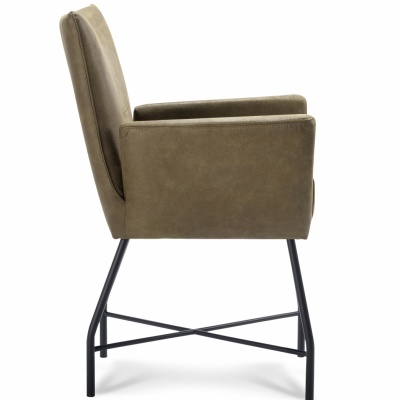 De Rocco is een zwaar uitgevoerde armstoel uitgevoerd in Lederlook Vintage.