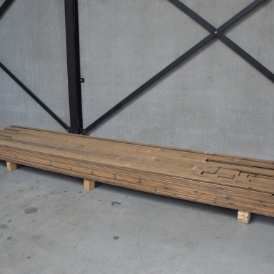 Deze oude grenen planken worden door Destijdsch handmatig uit oude sloopwerken gehaald. Het werd gebruikt als dakbeschot. De planken worden ontspijkerd en klaar gemaakt voor een volgende ronde. Aan de lange zijdes zit een mes en groef. Het hout heeft karakter en duurzamer dan dit kan niet. Zo zie je her en der spijkergaatjes en mooie scheurtjes. De planken zijn eenvoudig te leggen in een vloer of te gebruiken als wand of plafond.