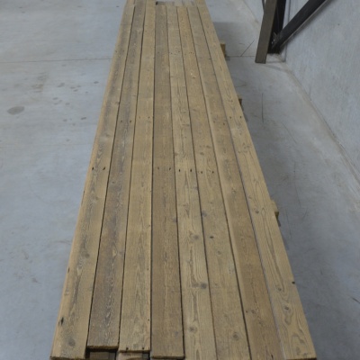 Deze oude grenen planken worden door Destijdsch handmatig uit oude sloopwerken haalt. Het werd gebruikt als dakbeschot of als vloer. De planken worden ontspijkerd en klaar gemaakt voor een volgende ronde. Aan de lange zijdes zit een mes en groef. Het hout heeft karakter en duurzamer dan dit kan niet. Zo zie je her en der spijkergaatjes en mooie scheurtjes. De planken zijn eenvoudig te leggen in een vloer of te gebruiken als wand of plafond.
