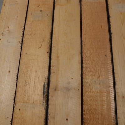 Deze oude grenen planken worden door Destijdsch handmatig uit oude sloopwerken gehaald. Het werd gebruikt als vloer of als dakbeschot. De planken worden ontspijkerd en klaar gemaakt voor een volgende ronde. Aan de lange zijdes zit een mes en groef. Het hout heeft karakter en duurzamer dan dit kan niet. Zo zie je her en der spijkergaatjes en mooie scheurtjes. De planken zijn eenvoudig te leggen in een vloer of te gebruiken als wand of plafond.