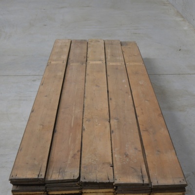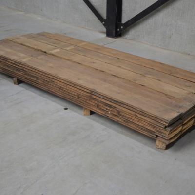 Deze oude grenen planken worden door Destijdsch handmatig uit oude sloopwerken gehaald. Het werd gebruikt als dakbeschot. De planken worden ontspijkerd en klaar gemaakt voor een volgende ronde. Aan de lange zijdes zit een mes en groef. Het hout heeft karakter en duurzamer dan dit kan niet. Zo zie je her en der spijkergaatjes en mooie scheurtjes. De planken zijn eenvoudig te leggen in een vloer of te gebruiken als wand of plafond.
