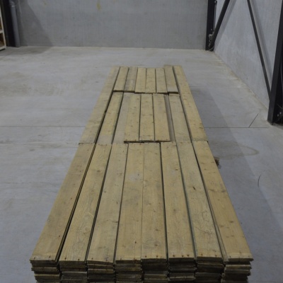 Deze oude grenen planken worden door Destijdsch handmatig uit oude sloopwerken gehaald. Het werd gebruikt als dakbeschot. De planken worden ontspijkerd en klaar gemaakt voor een volgende ronde. Aan de lange zijdes zit een mes en groef. Het hout heeft karakter en duurzamer dan dit kan niet. Zo zie je her en der spijkergaatjes en mooie scheurtjes. De planken zijn eenvoudig te leggen in een vloer of te gebruiken als wand of plafond.