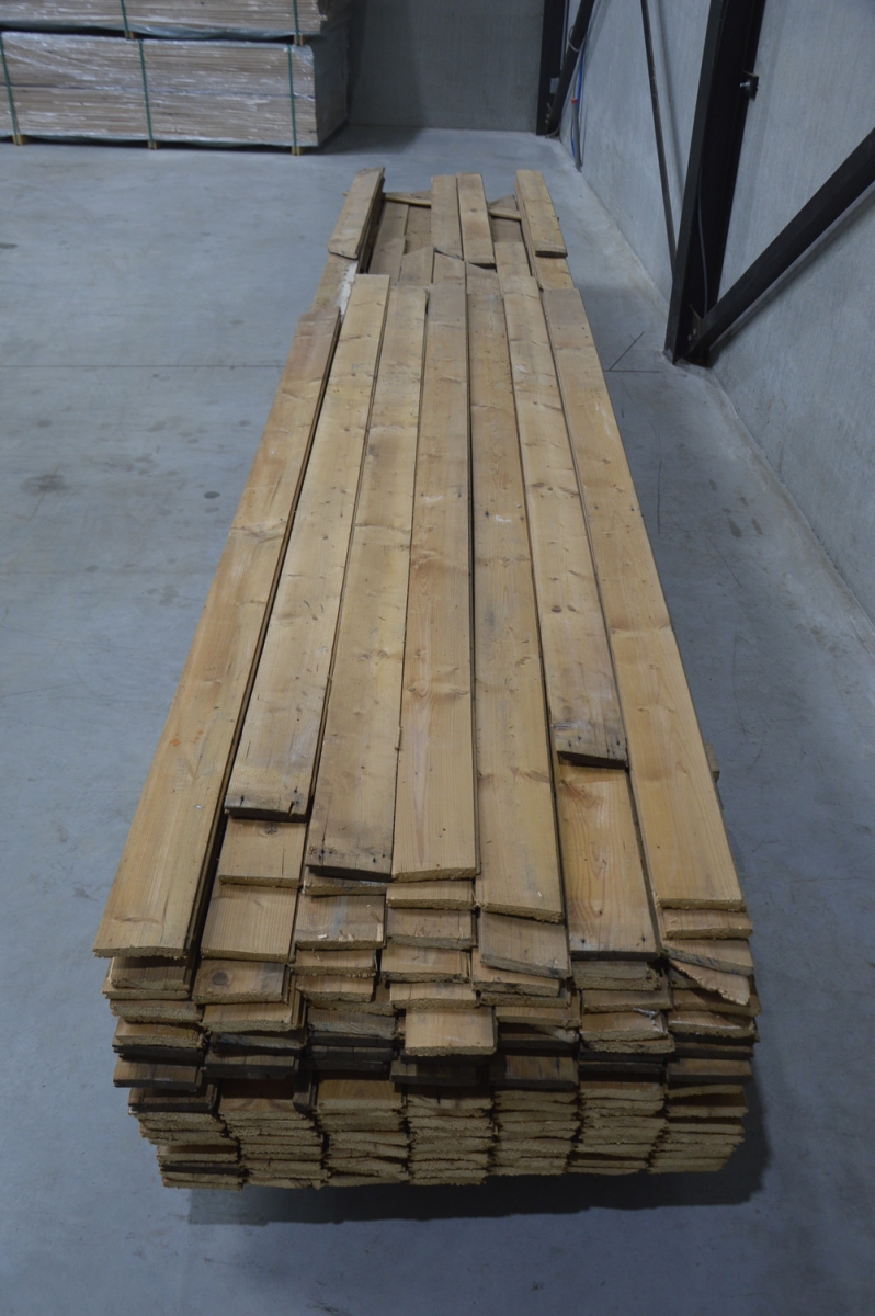 Deze oude grenen planken worden door Destijdsch handmatig uit oude sloopwerken gehaald. Het werd gebruikt als dakbeschot. De planken worden ontspijkerd en klaar gemaakt voor een volgende ronde. Aan de lange zijdes zit een mes en groef. Het hout heeft karakter en duurzamer dan dit kan niet. Zo zie je her en der spijkergaatjes en mooie scheurtjes. De planken zijn eenvoudig te leggen in een vloer of te gebruiken als wand of plafond.