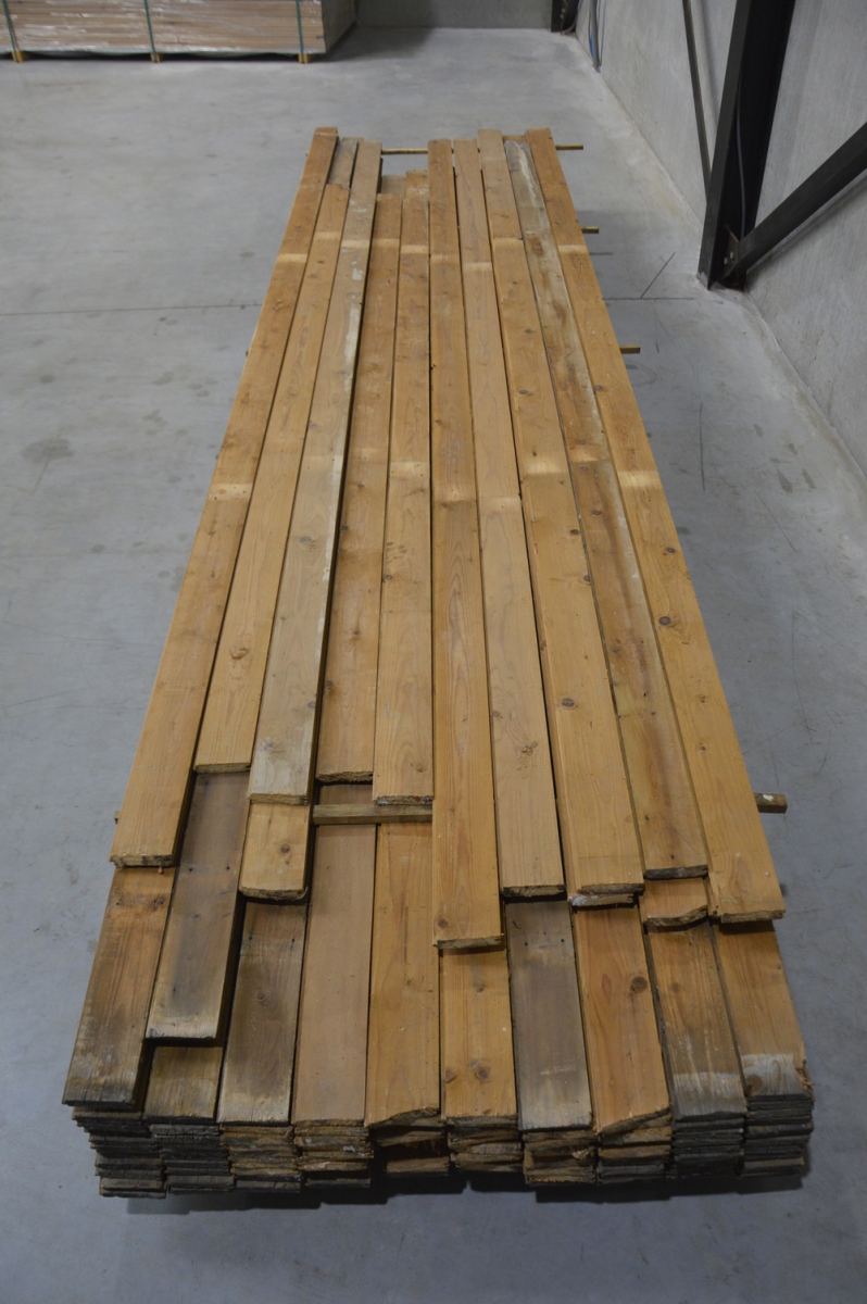 Deze oude grenen planken worden door Destijdsch handmatig uit oude sloopwerken gehaald. Het werd gebruikt als dakbeschot. De planken worden ontspijkerd en klaar gemaakt voor een volgende ronde. Aan de lange zijdes zit een mes en groef. Het hout heeft karakter en duurzamer dan dit kan niet. Zo zie je her en der spijkergaatjes en mooie scheurtjes. De planken zijn eenvoudig te leggen in een vloer of te gebruiken als wand of plafond.