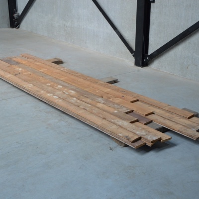 Deze planken worden door Destijdsch uit oude sloopwerken gehaald. De planken worden ontspijkerd en klaargemaakt voor een volgende ronde. Aan de lange zijdes zit een mes en groef. Ons hout heeft karakter en duurzamer kan niet. Zo zie je her en der spijkergaatjes en mooie scheurtjes. De planken zijn eenvoudig te leggen als vloer of te gebruiken als wand of plafond.