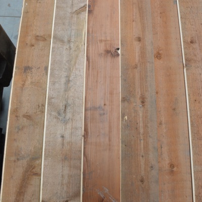 Deze planken worden gezaagd uit oude balken die Destijdsch uit oude sloopwerken haalt. De balken worden ontspijkerd en vervolgens gezaagd tot planken. Aan de lange zijdes zit een mes en groef. In feite zijn het dus nieuwe planken geworden, maar met het karakter van een oude plank. Zo zie je her en der spijkergaatjes en mooie scheurtjes. 1 zijde heeft nog de oude buitenkant van de balk en de andere zijde is geschaafd. De planken zijn eenvoudig te leggen in een vloer of te gebruiken als wand of plafond.