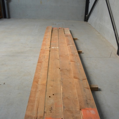 Deze planken worden gezaagd uit oude balken die Destijdsch uit oude sloopwerken haalt. De balken worden ontspijkerd en vervolgens gezaagd tot planken. Aan de lange zijdes zit een mes en groef. In feite zijn het dus nieuwe planken geworden, maar met het karakter van een oude plank. Zo zie je her en der spijkergaatjes en mooie scheurtjes. 1 zijde heeft nog de oude buitenkant van de balk en de andere zijde is geschaafd (laatste foto). De planken zijn eenvoudig te leggen in een vloer of te gebruiken als wand of plafond.