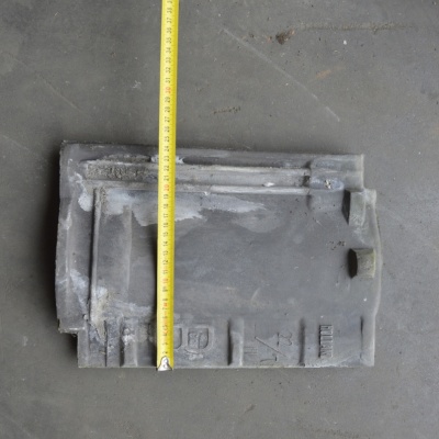 Nette VH (verbeterde Hollandse) dakpannen. De kleur is blauwgesmoord. De fabrikant is B en C Woerden.