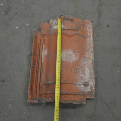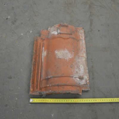 Gebruikte verbeterde Romeinse dakpannen van De Valk Meeuwissen. De kleur is oranjerood.