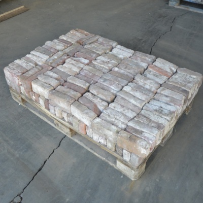 Stuk voor stuk met de hand schoon gebikt en op een pallet gestapeld. Aangezien het erg oude stenen zijn, kan de afmeting een beetje variëren.