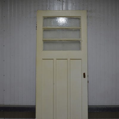 Oude Bruynzeel zesvlaks paneeldeur met 3 ruitjes