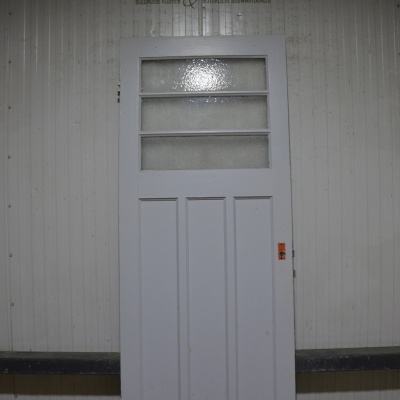 Oude Bruynzeel zesvlaks paneeldeur met ruitjes