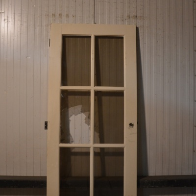 Oude paneeldeur met glas