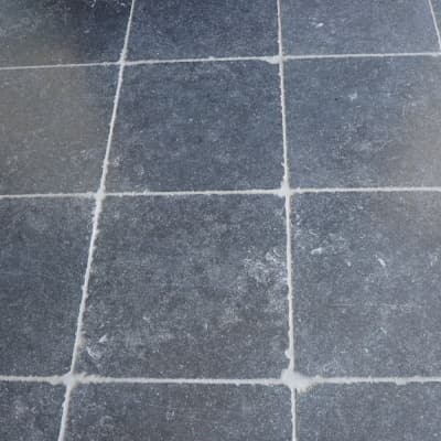 De zijkanten van deze tegels zijn licht verouderd en het oppervlak  van de natuurstenen vloer is daardoor is fijn gewolkt. Doordat de tegels zijn verzoet waarbij de tegels met een diamant wordt bewerkt, kleurt het oppervlak diepblauw waardoor diverse aspecten zoals bijennesten en aders in de steen meer geaccentueerd worden. Prijs is per vierkante meter. Deze tegels zijn geschikt voor vloerverwarming en zeer onderhoudsvriendelijk. De dikte van de tegel is 2 cm.