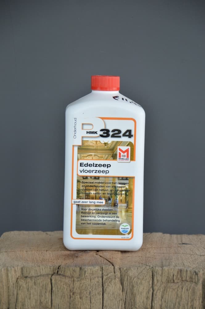 Deze edelzeep is geschikt voor dagelijks onderhoud aan uw vloer. De zeep heeft een natuurlijke basis. Deze edelzeep heeft actieve bestandsdelen die zorgen voor een goede en grondige reiniging en heeft een verzorgende werking op natuur- en kunssteen, vloeren van cotto, baksteentegels, klinkers, kleitegels en niet geglazuurde tegels. Door de natuurlijke bestandsdelen van de HMK P324 Edelzeep zorgt dit voor een optimale kleur en structuur van de tegels. Dit P324 is tevens geschikt voor de muur en geeft zowel de muur- als vloeroppervlak een glanzend aanzien. Bij regelmatig gebruik van de vloerzeep wordt het behandelde oppervlak minder gevoelig voor vlekken en kunnen gemakkelijker worden onderhouden. Doordat de HMK P324 Edelzeep beschikt over wateroplosbare bestandsdelen worden grauwsluiers voorkomen en blijven op het materiaal geen lagen meer achter.