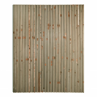 akoestische wandpanelen van oud geverfd sloophout 60 x 300 cm